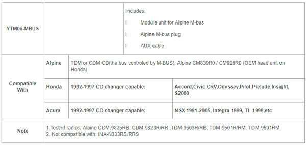 Совместим с автомагнитолами серий TDM / CDM CD (M-Bus) Acura